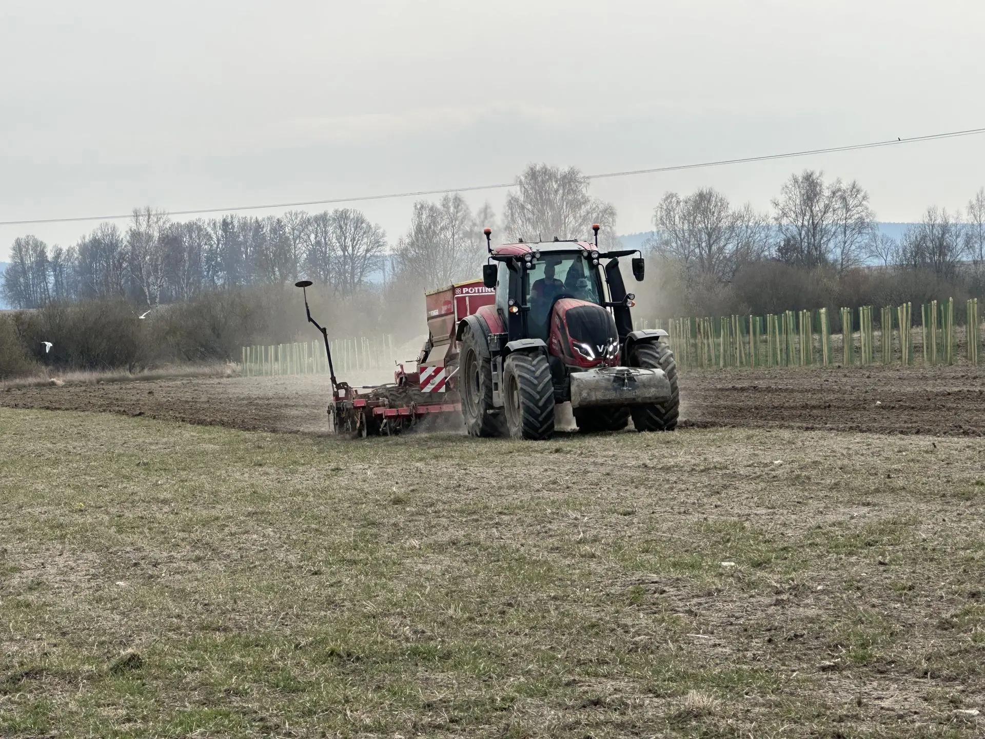 Zajistíme kvalitní přípravu půdy pětiradličným pluhem a rovnoměrný výsev secím strojem s diskovou sekcí a záběrem 4 metry pro optimální růst plodin.